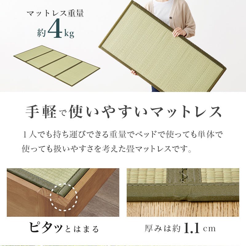 ■主材:天然木(パイン)、マットレス:<表>い草<中材>ポリエステル■原産国:ベッド:ベトナム製、畳マット:中国製