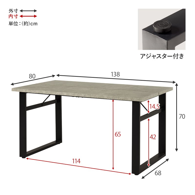 テーブル:(約)幅138×奥行80×高さ70cm、チェア:(約)幅47×奥行51×高さ77.5×座面高43cm