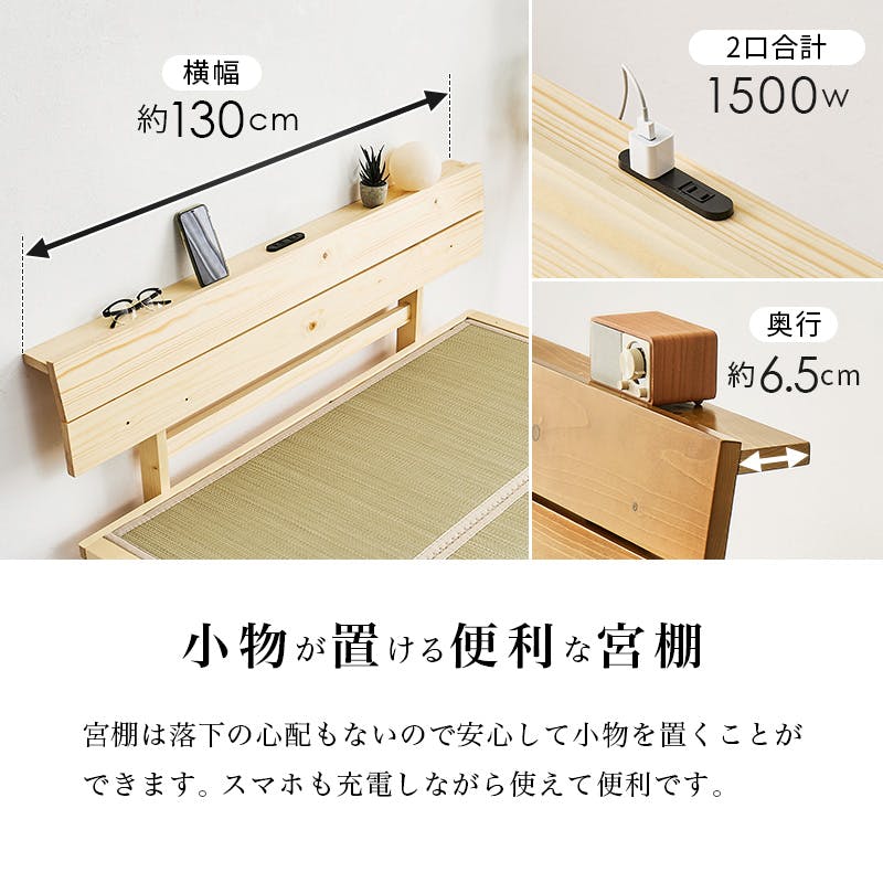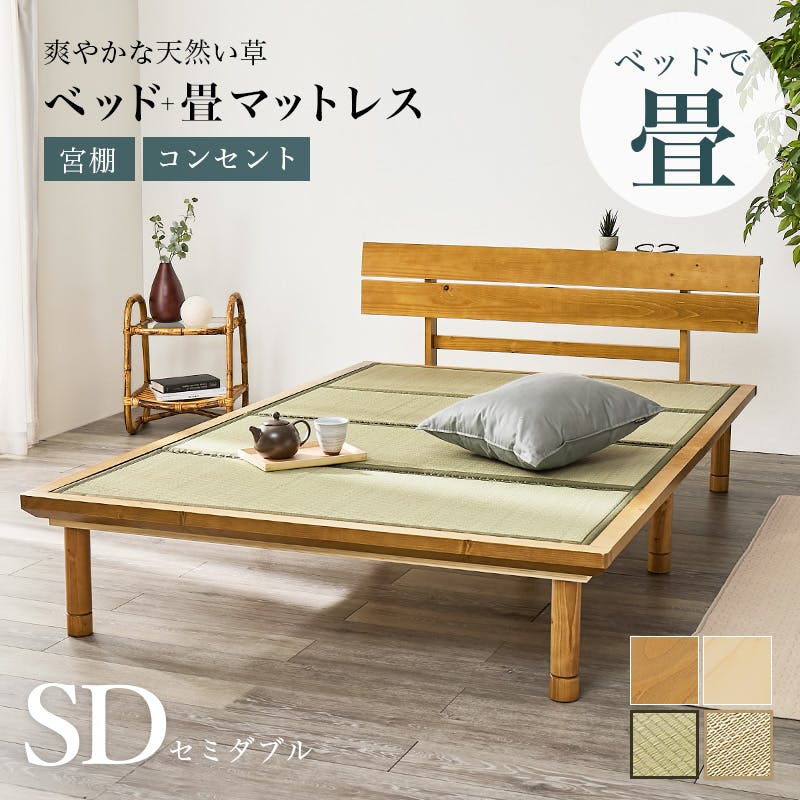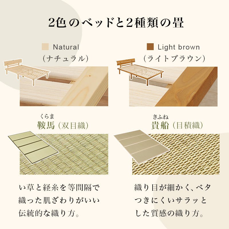 ■主材:天然木(パイン)、マットレス:<表>い草<中材>ポリエステル■原産国:ベッド:ベトナム製、畳マット:中国製