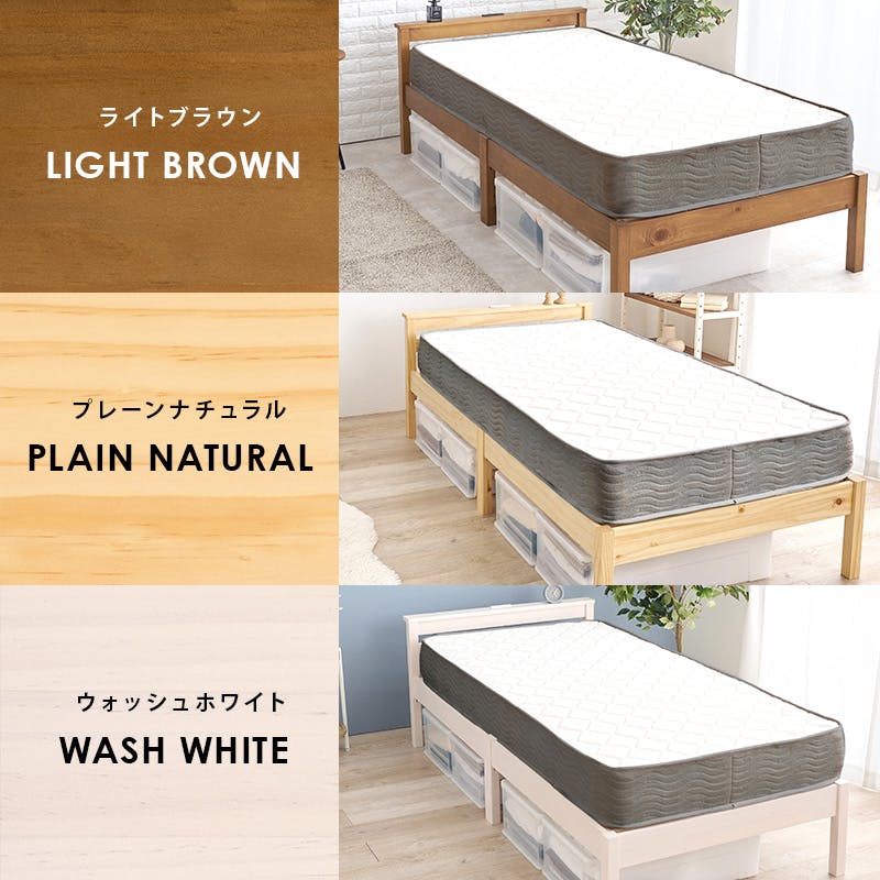 ■主材:天然木(パイン材)、マットレス:<主材>ボンネルコイル<張地>ポリエステル■原産国:ベッド:ベトナム製、マットレス:中国製