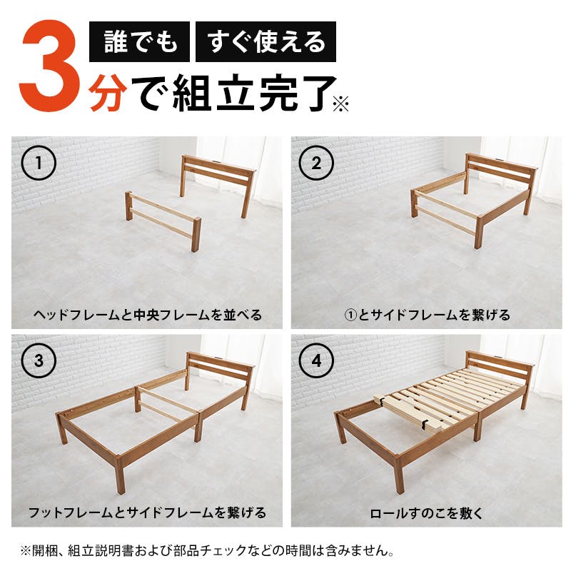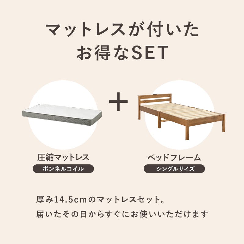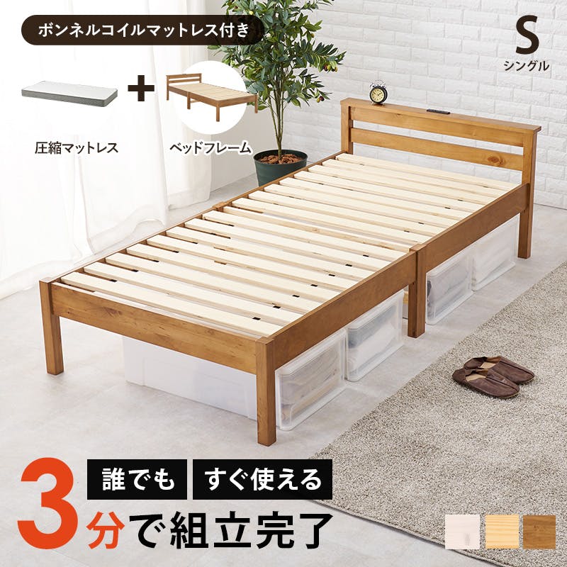 組立簡単 マットレス付シングルベッド MB-5150S-NA3301 ナチュラル インテリア 寝具 家具 収納 ベッド フレーム マットレスセット 3000004499【別送品】
