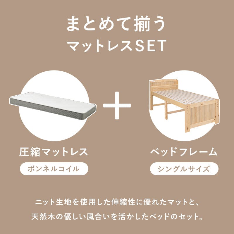 ■主材:天然木(パイン材)、マットレス:<主材>ボンネルコイル<張地>ポリエステル■原産国:ベッド:ベトナム製、マットレス:中国製