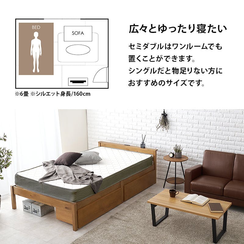 組立簡単 マットレス・引出し付セミダブルベッド MB-5150SD-LBR3301HS ライトブラウン インテリア 寝具 家具 収納 ベッド フレーム マットレスセット 3000004639【別送品】