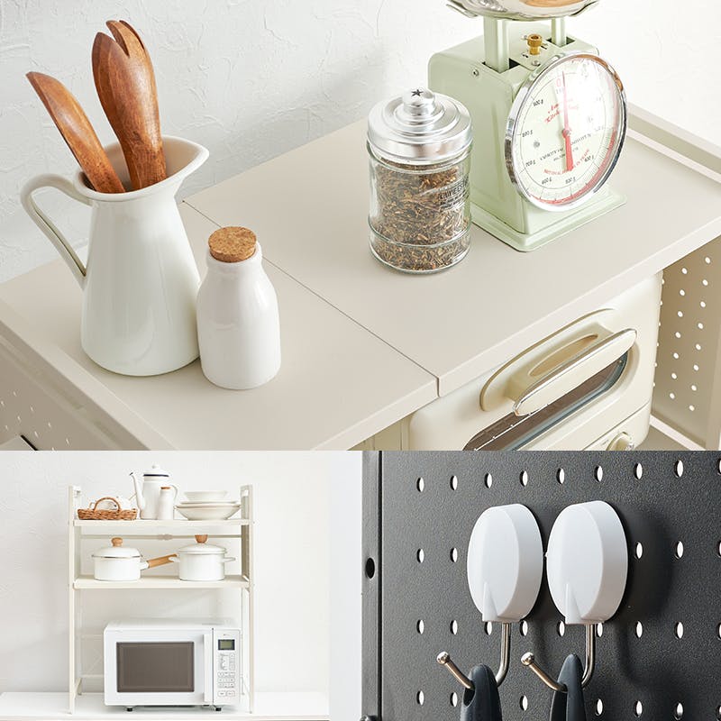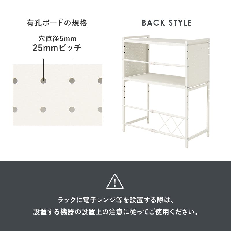 • 伸縮レンジラック KR-3752WH ホワイト インテリア 家具 収納 収納家具 キッチン収納 食器棚 キッチンボード 3000004701【別送品】