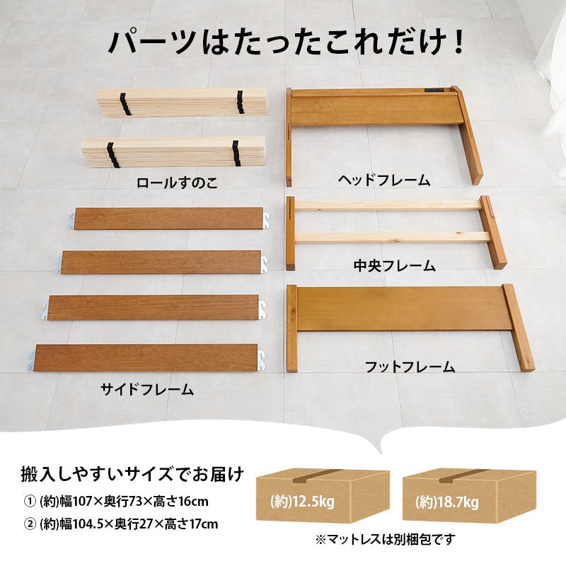 組立簡単 マットレス付シングルベッド MB-5195S-LBR3301 ライトブラウン インテリア 寝具 家具 収納 ベッド フレーム マットレスセット 3000004717【別送品】