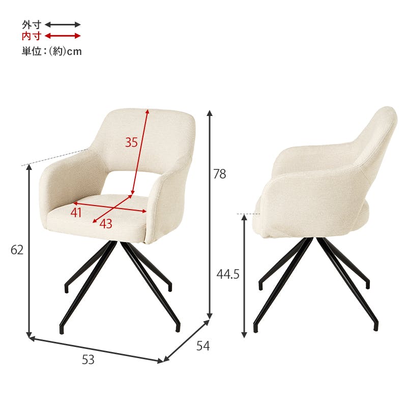 (約)幅53×奥行54×高さ78×座面高44.5cm