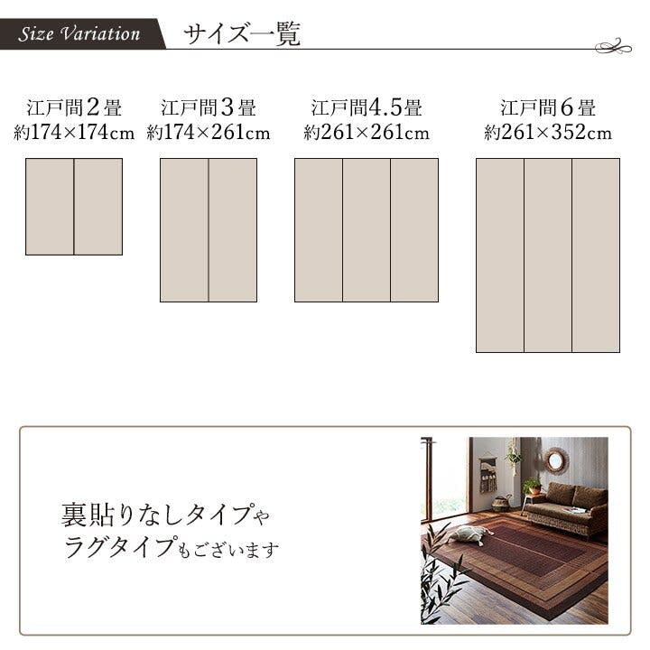 国産い草花ござ 裏張り ラグ カーペット DXランクス 江戸間2畳 WI 174X174 モダン リビング 夏用涼しい【別送品】