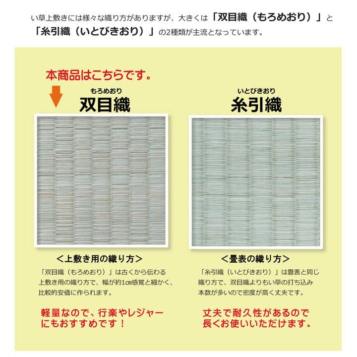 表地:い草 ヘリ=ポリプロピレン/ポリエチレン 原産国:日本