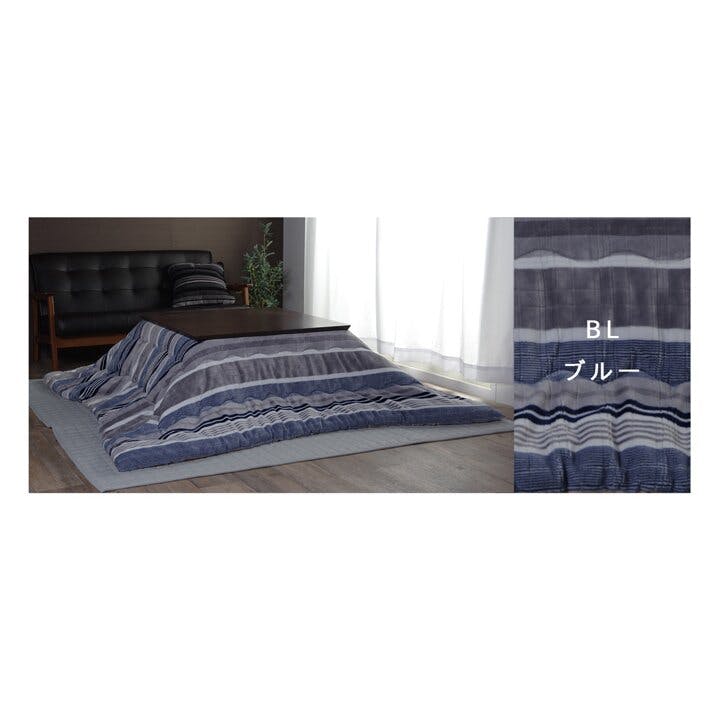 ニードル こたつ布団 正方形 カジュアル ストライプ柄 ブルー 約190×190cm 節電アイテム 省エネ対策 暖房節約 4550317014956【別送品】
