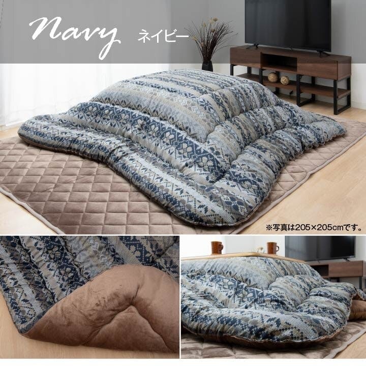 表地=ポリエステル100%(ピーチスキン)裏地=ポリエステル100%(フランネル)中材=ポリエステル100% 2.2kg(東レ マッシュロンわた) 日本(側地=中国 最終加工=日本)