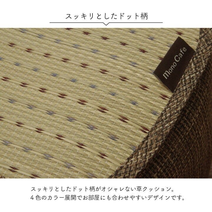 表地=い草(織込メセキ)裏地=ポリエステル 中材=発泡ポリスチレン 中国