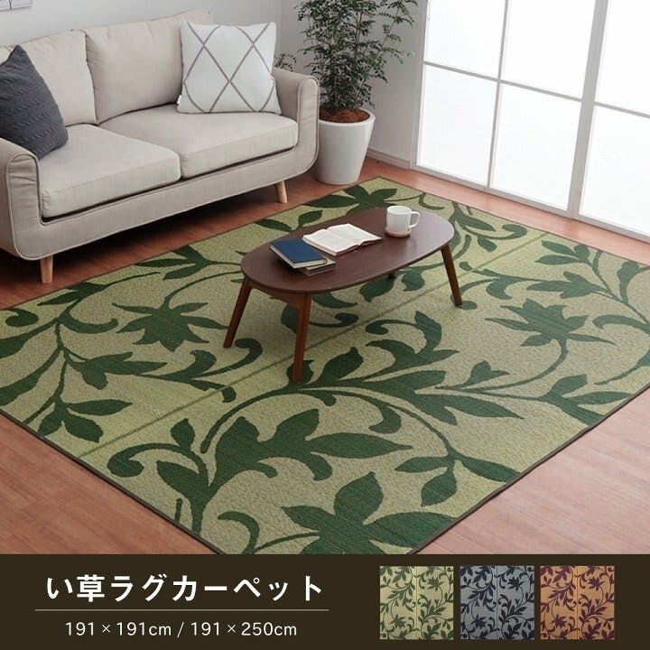 セレス ラグ 長方形 い草 リーフ 自然素材 抗菌防臭 滑り止め不織布 グリーン 約191×250cm 防音対策【別送品】