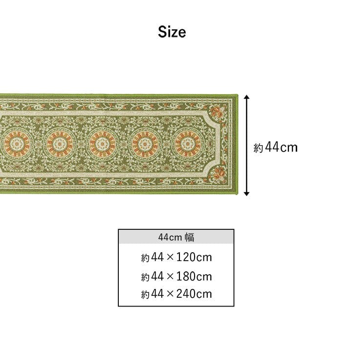 撥水ロマン マット キッチンマット 撥水 エレガンス柄 滑りにくい ワイン 約44×240cm【別送品】