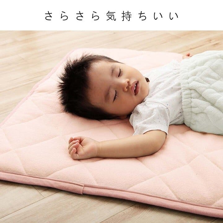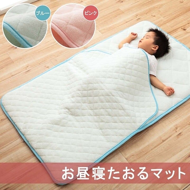 キッズ 寝具 お昼寝マット 肌掛け布団 一体型 寝冷え対策 ジュニア 綿100% 滑り止め付き 洗える 洗濯機丸洗い 優しいタオル地 70×120cm ブルー【別送品】