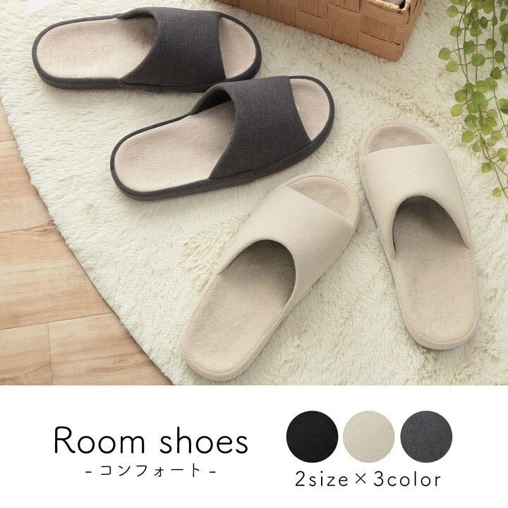 • リンド スリッパ ルームシューズ シンプル コンフォート 前あき 通年 アイボリー Mサイズ 室内 自宅 オフィス 来客 在宅勤務【別送品】