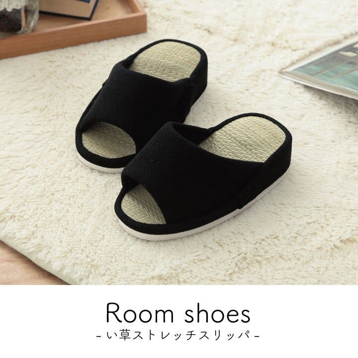 スアブ スリッパ ルームシューズ 通年 い草 消臭 ストレッチ 引き締め ブラック シンプル 自宅 オフィス【別送品】
