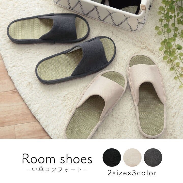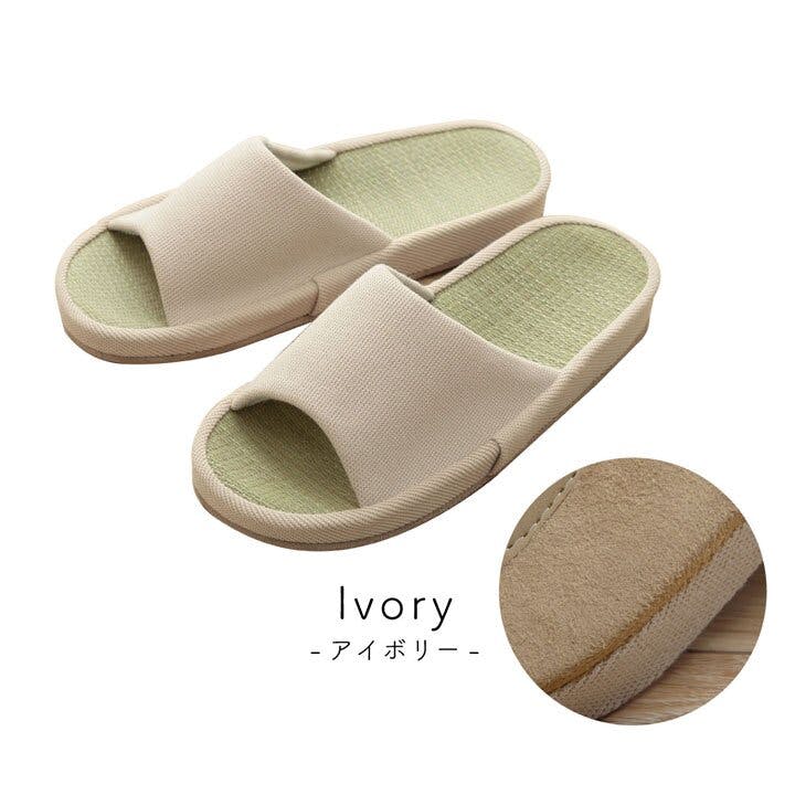 スアブ スリッパ ルームシューズ シンプル い草 消臭 コンフォート 前あき 通年 グレー Mサイズ 室内 自宅 オフィス 来客 在宅勤務 夏【別送品】