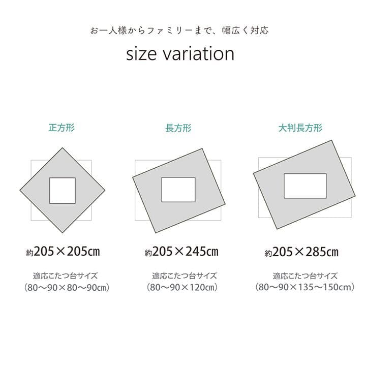 80~90cm角のこたつ台に適応