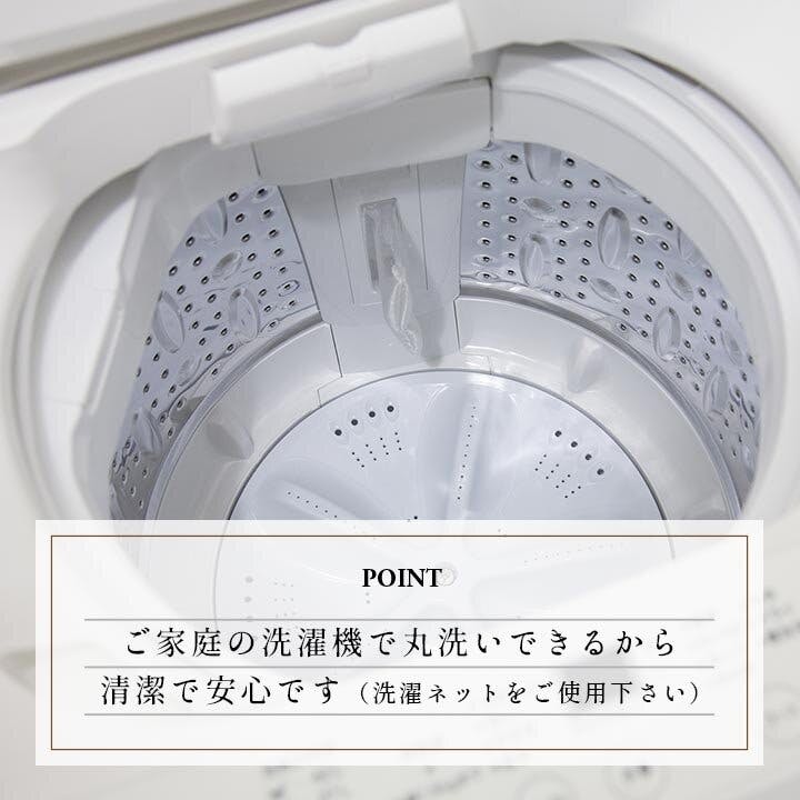 液温は40℃を限度とし、洗濯機で洗濯ができる(洗濯時は洗濯ネットをご使用ください。)干し方=日陰のつり干しがよい。