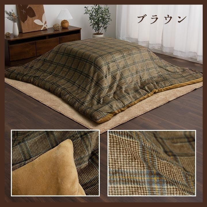 カリス こたつ布団カバー カバー 正方形 単品 洗える カジュアル チェック柄 撥水 ネイビー 約195×195cm 節電アイテム 省エネ対策 暖房節約 4550317200809【別送品】