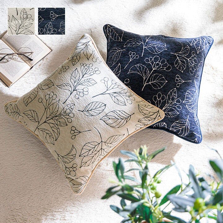 ブラン クッション 日本製 洗える セアテ ボタニカル アイボリー 約43×43cm リビングインテリア 快適アイテム おしゃれ雑貨【別送品】