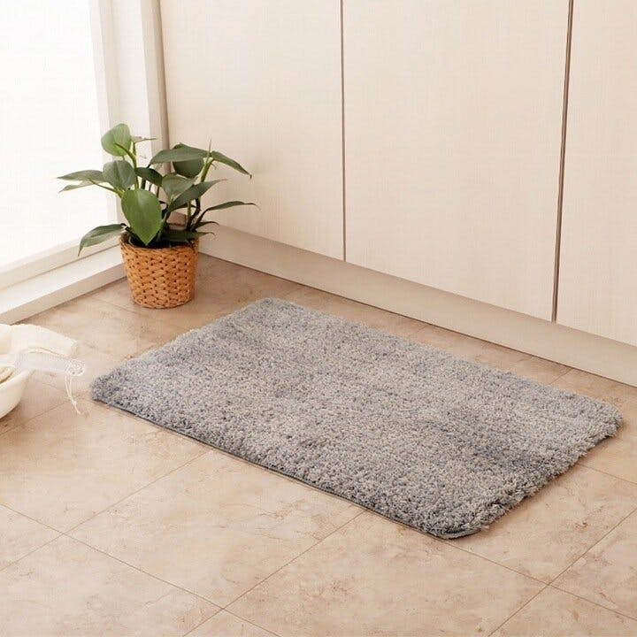 ふんわりシャギー 玄関マット ふんわり ふかふか 肌ざわり 滑りにくい スタンドミラー前 シャギー シンプル ナチュラルカラー グリーン 45×75cm【別送品】