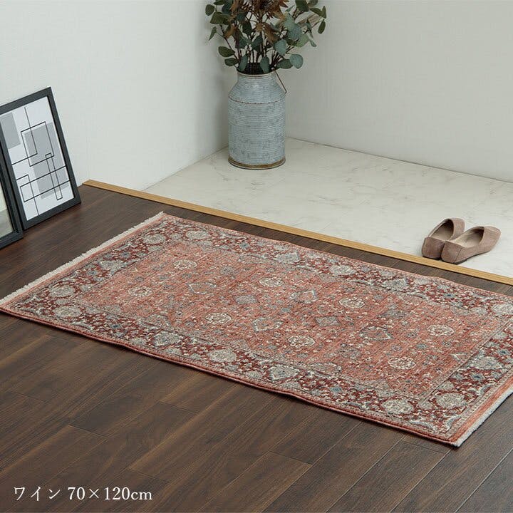 アルスラーン 玄関 マット トルコ製 ウィルトン 織り 繊細 立体感 超高目付 肌触り柔らか 抗菌防臭 消臭 丈夫 へたりにくい ソファー前用 ベッドサイド用 約60×95cm ワイン【別送品】