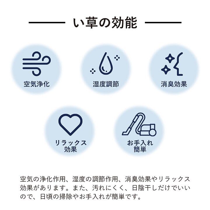 表地=い草 ヘリ=綿100% 裏地=不織布3mm(滑り止め加工ポリエステル100%) 日本