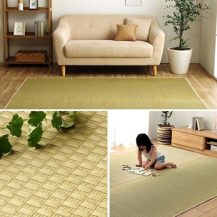 プレーン ラグ 長方形 い草 日本製 国産 自然素材 滑り止め加工 ナチュラル 市松柄 オールシーズン 消臭 シンプル 約191×300cm ホットカーペット対応 床暖房対応 防音対策【別送品】