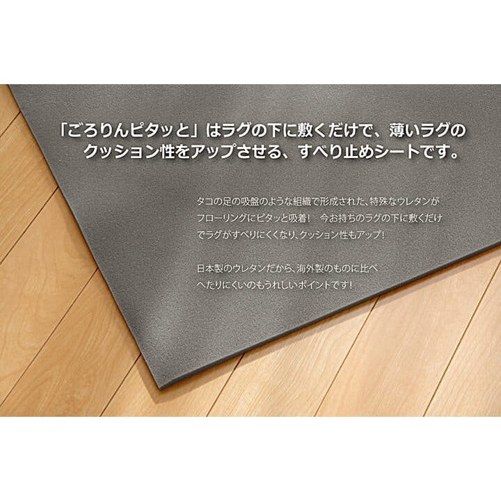 ごろりんピタッと 滑り止めシート ウレタン ふんわり クッション性 ボリューム 滑りにくい フリーカット グレー 約170×170cm【別送品】