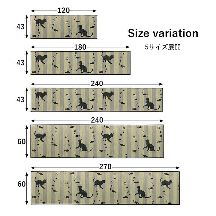 ニャコルン キッチンマット 猫 猫柄 かわいい トレンド スタイリッシュ おすすめ い草 い草ラグ 抗菌防臭 国産 日本製 滑り止め ウレタン マット いぐさ 約43×240cm【別送品】