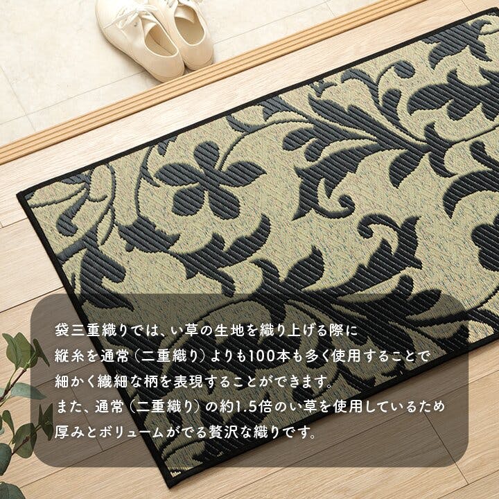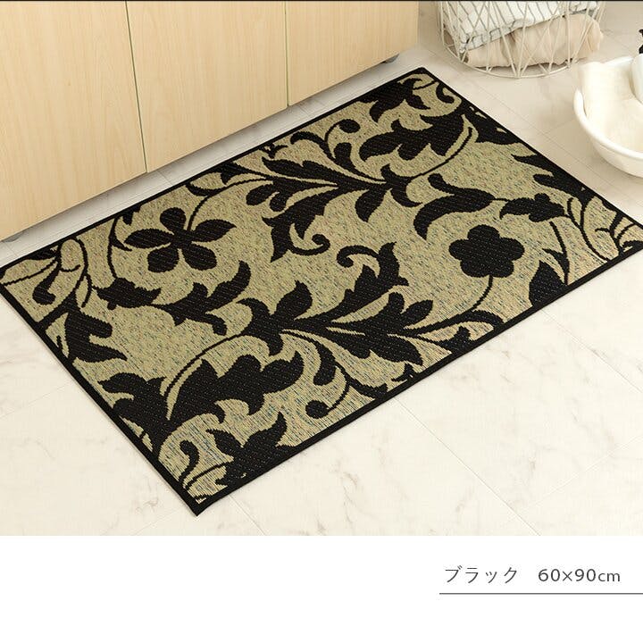 ネム おすすめ 花柄 高級感 玄関マット 室内 トレンド スタイリッシュ 玄関 マット い草ラグ 日本製 抗菌防臭 国産 滑り止めいぐさ ベージュ 約60×90cm ウィルトン織り 汚れにくい トルコ製【別送品】