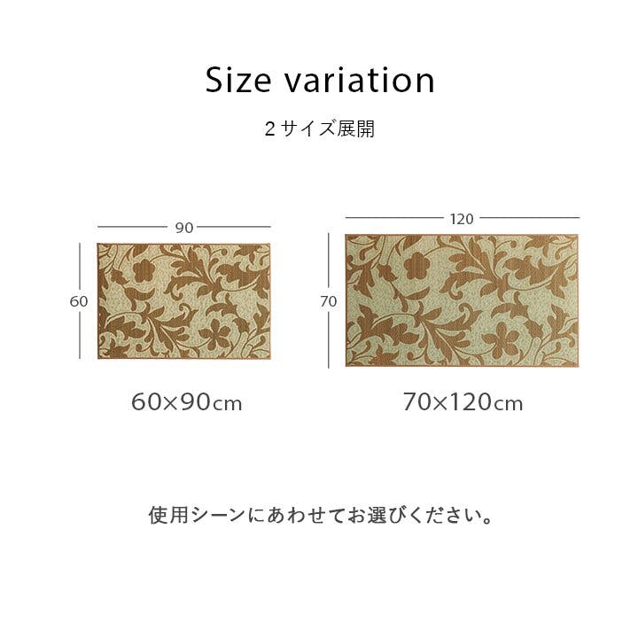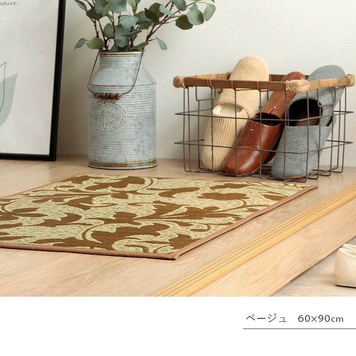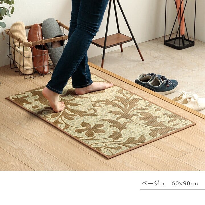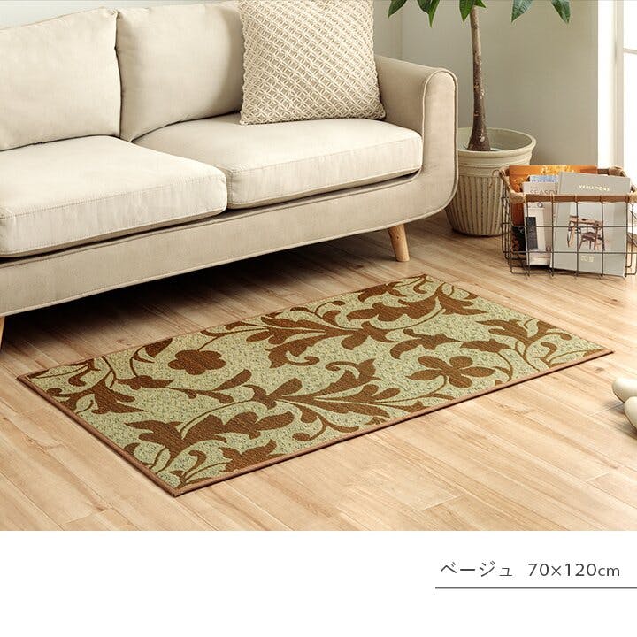 ネム おすすめ 花柄 高級感 玄関マット 室内 トレンド スタイリッシュ 玄関 マット い草ラグ 日本製 抗菌防臭 国産 滑り止めいぐさ ベージュ 約70×120cm ウィルトン織り 汚れにくい トルコ製【別送品】