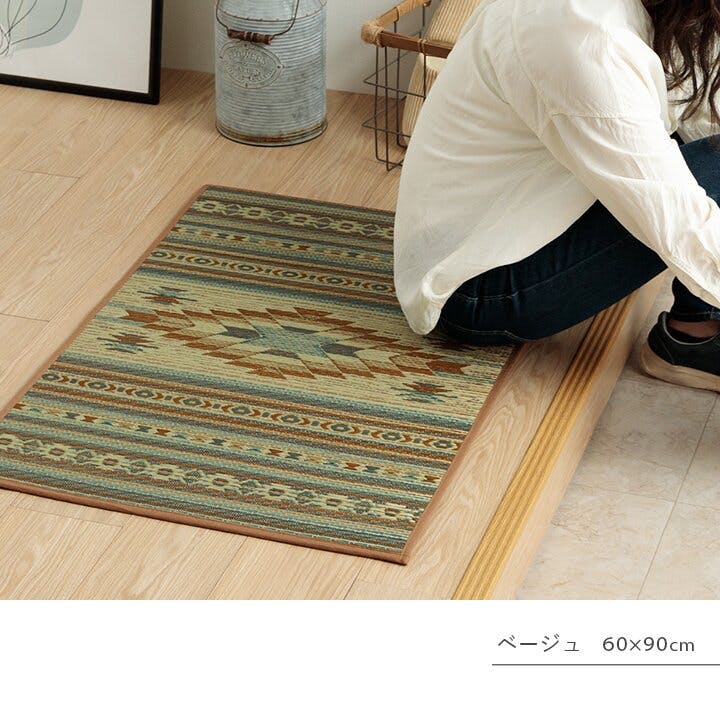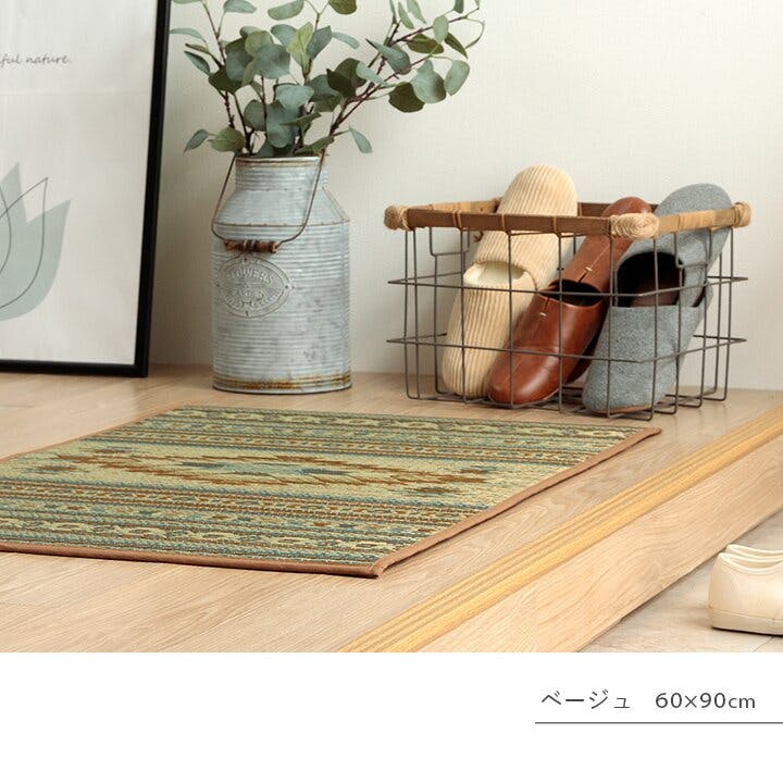 ピオス 玄関マット 室内 トレンド スタイリッシュ マット い草ラグ 日本製 抗菌防臭 日本製 滑り止め ウレタン 新生活 ラグマット 北欧調 おすすめ ベージュ 約60×90cm【別送品】