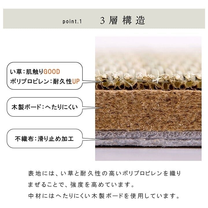 表地=い草+ポリプロピレン中材=木製ボード10mm裏地=不織布 日本