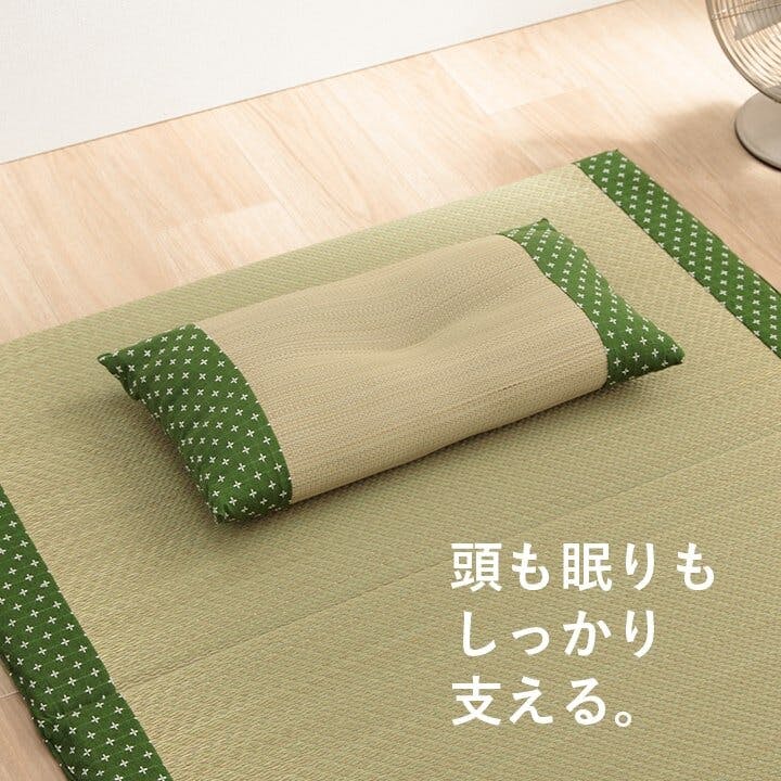 • 詩織 寝具 枕 平枕 い草 吸湿 調湿効果 抗菌防臭 グリーン 50×30cm 睡眠改善 快眠グッズ【別送品】