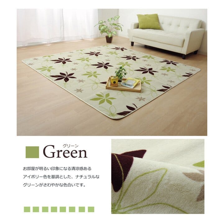 プランタ ラグ カーペット 4畳 洗える 抗菌 防臭 無地 『WS』 グリーン 約200×300cm (ホットカーペット対応) 防音対策【別送品】