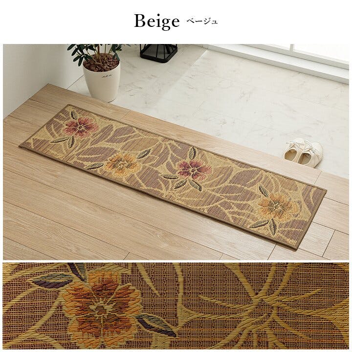 なでしこ おすすめ 玄関マット 上がり框 和モダン トレンド スタイリッシュ クッション性 花柄 高級感アップ 室内 天然素材 インテリア ブラック 約35×90cm【別送品】