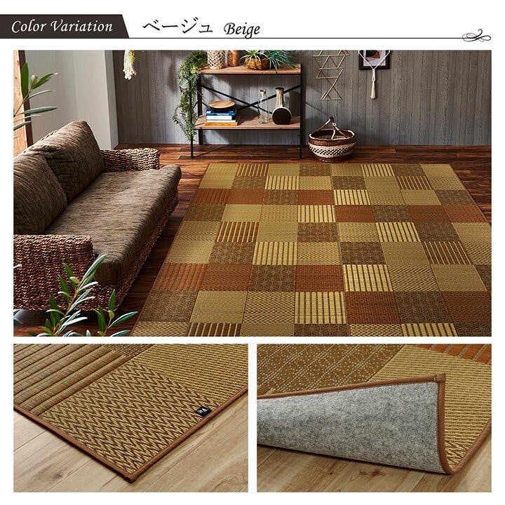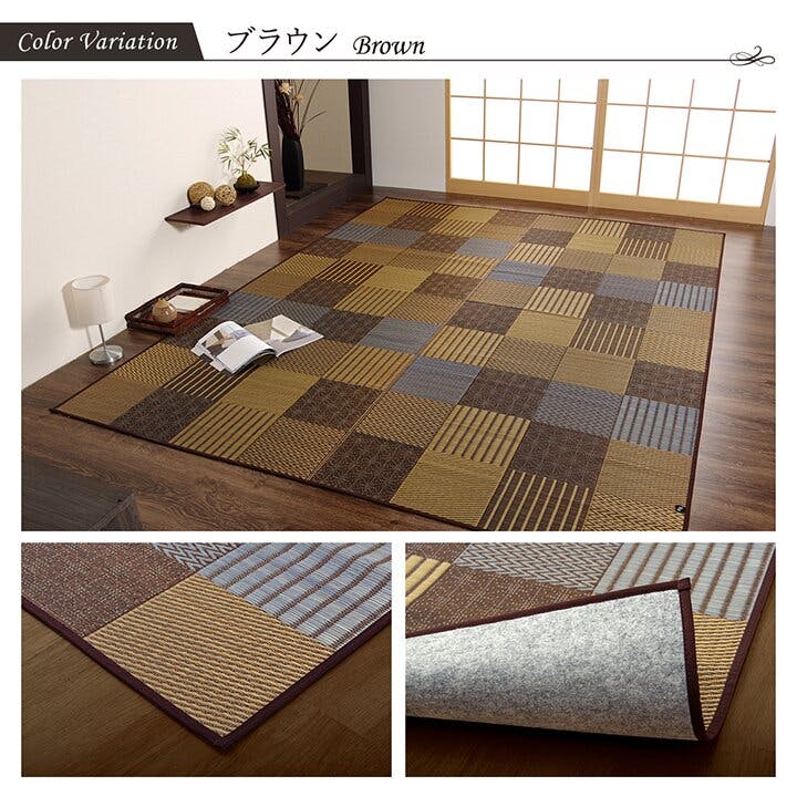 京刺子 ラグ い草 国産 純国産 日本製 モダン 抗菌防臭 自然素材 パッチワーク 不織布 ブラウン 約191×191cm 防音対策【別送品】