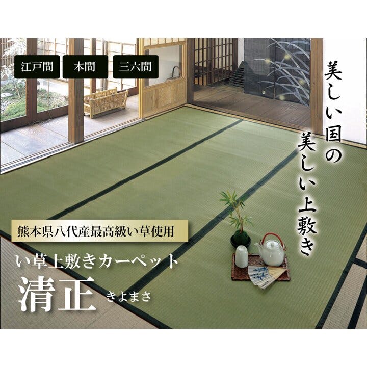 清正 純国産 い草 上敷き カーペット 麻綿織 江戸間2畳(約176×176cm) 熊本県八代産イ草使用 防音対策【別送品】