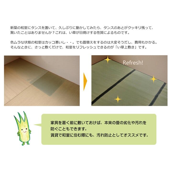 表地:い草 ヘリ=ポリプロピレン/ポリエチレン 日本