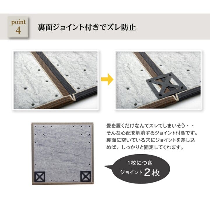 表地=い草 ※二・二目織中材=フェルト15mm裏地=連結用ジョイント付(滑りにくい) 日本
