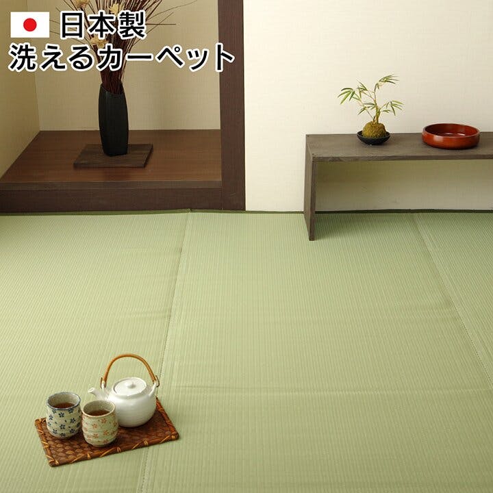 ファーム ラグ 洗える 日本製 国産 アウトドア レジャー アウトドア 和室 シンプル グリーン 江戸間4.5畳(約261×261cm) 防音対策【別送品】