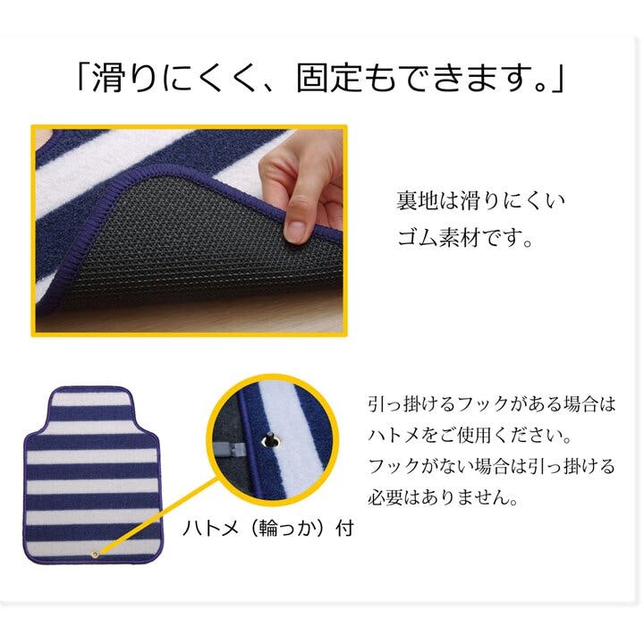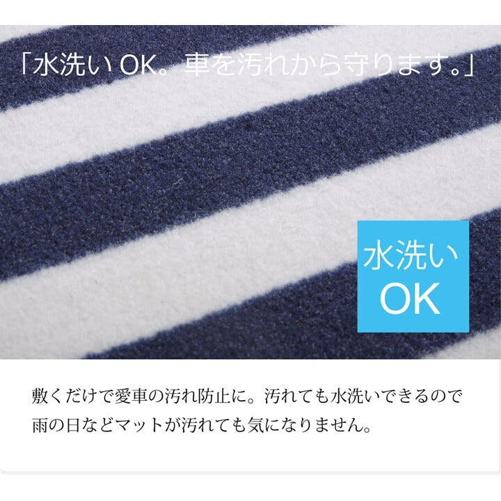 ロカ フロアマット カーマット 運転席 助手席 ベーシック ボーダー 『フロントマット』 ネイビー 約45×60cm【別送品】