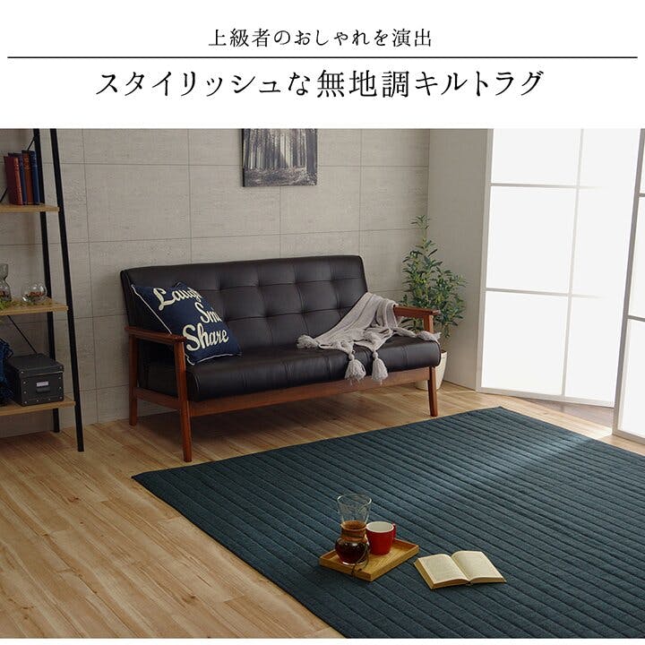スタイル ラグ カーペット 長方形 3畳 洗える 無地 ネイビー 約200×250cm ホットカーペット 長方形対応 防音対策【別送品】