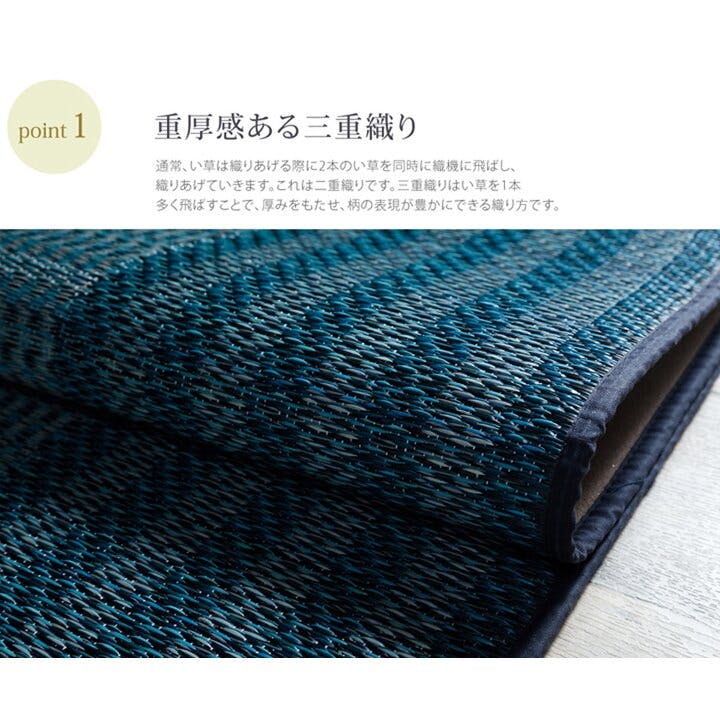 Fナール い草ラグ トレンド スタイリッシュ 国産 カーペット シンプル ネイビー 約191×250cm 防音対策【別送品】