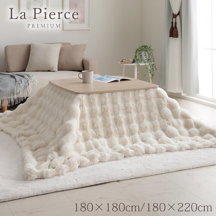 ラピアスプレミアム こたつ布団 正方形 こたつ掛布団 省エネ 韓国インテリア 海外風 新生活 北欧 姫系 ふわふわ アイボリー 約180×180cm 4550317223716【別送品】