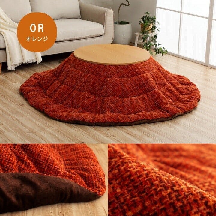 あたたかみのあるカラーを使用したこたつ布団です。表地は凸凹感を持たせボコボコとしたタッチ感が特徴です。裏地にはなめらかな肌触りのフランネルを使用しています。薄手なので折りたたんでもかさばらず、コンパクトに収納できます。こたつの特徴として、1.省エネルギーこたつは必要なところだけを暖める省エネルギー暖房器具です。2.クリーンこたつは二酸化炭素など有害物質を出さないのでクリーンです。3.団