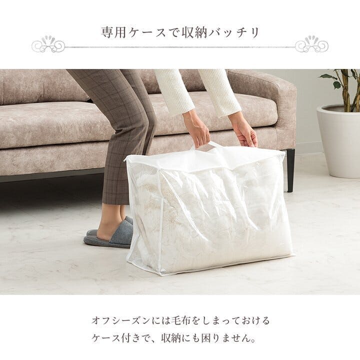 ”大人かわいい”シンプルデザインのラピアスシリーズに、プレミアムな触り心地の2枚合わせ毛布が登場。もこもことしたシルエットが可愛い、ラビットファー調の2枚合わせ毛布です。当商品の生地を選定するにあたり、担当者が数種類の生地を実際に触り比べ、プレミアムの名に相応しい触り心地の生地を追及しました。極細のフィラメント糸で、とろけるような触り心地です。毛足の長さは25mmを採用しているので、一般的