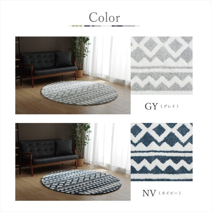マルク ネイビー 160cm丸 1331000192105 カーペット 柄ラグ ポリエステル【別送品】